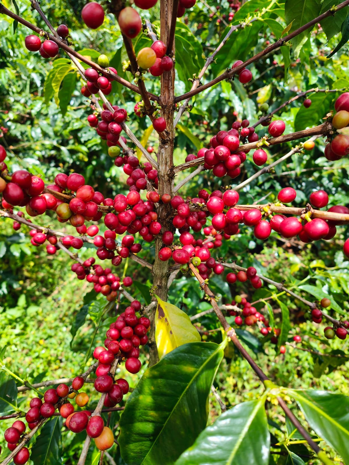 Natural processing is usual in regions where there is little rain. It’s the oldest method of green coffee preparation and doesn’t require much in the way of large, expensive machinery. It is, however, very labour intensive. Picking coffee is always done by hand, at this scale, as cherries ripen at different times, even on the same branch. Natural processing involves laying the cherries out in the sun so the fruit ferments on the bean. The cherries must be carefully watched and turned to ensure consistent drying and to pick out any defective or rotten fruit. Every stage requires this level of hands-on work and results in delicious, super-flavourful, bright coffees.