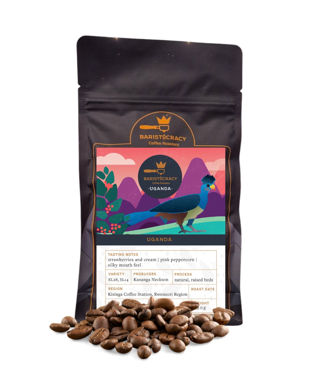 Uganda, along with Ethiopia, is one of the few countries where coffee grows naturally. Robusta trees can be found around Lake Victoria and formed the basis of Uganda’s initial coffee trade. After failed initiatives to capitalise on the native robusta and a devastating battle with coffee-wilt disease in the early 2000s, Uganda wasn’t really on the speciality coffee map. Arabica was introduced to the country by way of Ethiopia and had been a partner crop, grown in the mountainous Rwenzori region along with beans, peanuts and bananas, for mostly home consumption. It’s only relatively recently that growers and the Ugandan government became aware of the quality of some arabica grown in this fertile area.